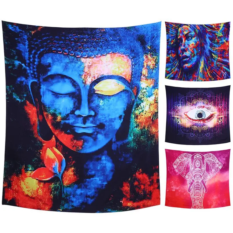 Us 4 28 40 Off Night Starry Sky Buddha Tapestry Yoga Mat Wall Hanging Tree Natural Scenery Tapestry Living Room Decor In Tapestry From Home Garden