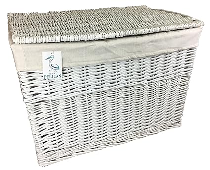 White Painted Wicker Hamper Lined Toy Or Laundry Store